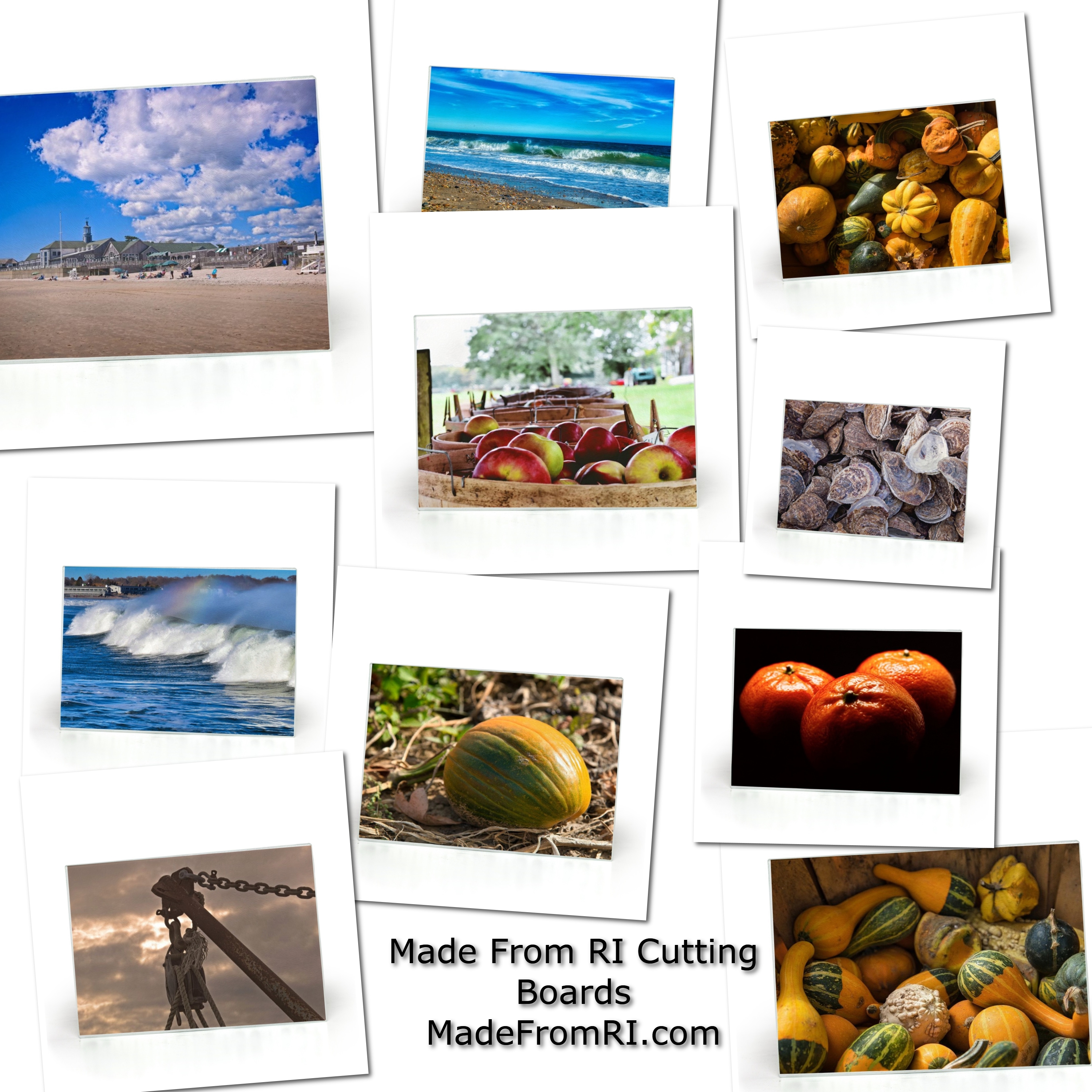 Here at Made From RI, we lean into what glass does best. We make our own photographic glass cutting boards in‑house … both custom and pre‑made … featuring not just Rhode Island scenes but also heritage graphic textures, and the quiet beauty of the places we love. We also carry glass cutting boards from other Rhode Island makers, each with its own character and craft. Whether you choose one of ours or one from a fellow local artisan, you’re getting something that’s both beautiful and genuinely useful: a piece of functional art that brings a bit of Rhode Island into the everyday rhythm of your kitchen.